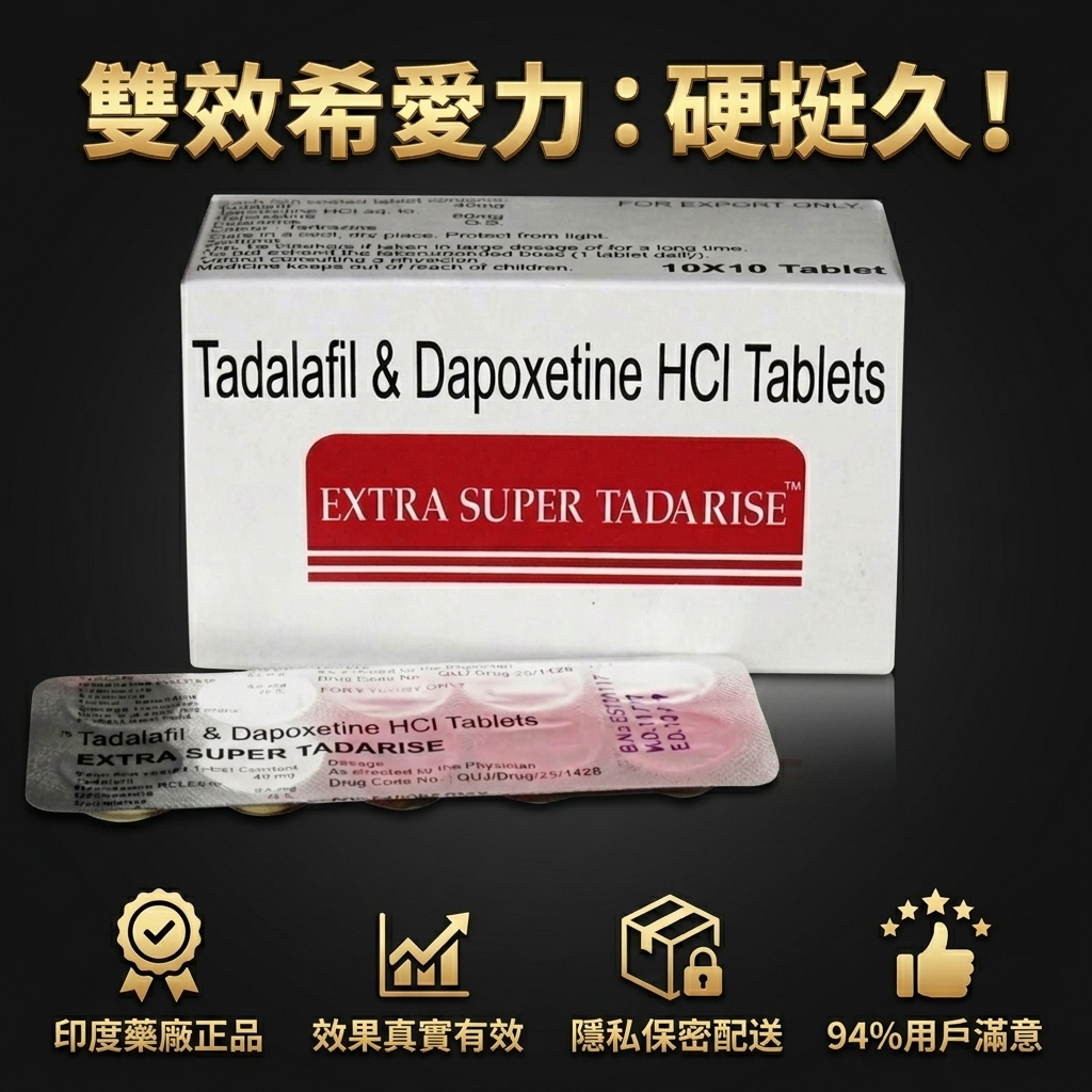 希愛力雙效片又名超級犀利士,印度在藥物的仿制以及藥品的科研是有大量的资金投入的,能讓大家以最低的價格體驗一樣的功效和作用;印度有世界藥房的稱號,印度希愛力能風靡全球市場也是必然的,每一粒有效成分是由他達拉非40mg+達泊西汀60mg 通遏特殊工蔡混合而成的.雙效希愛力是良好的助勃和延時作用,達到一粒藥物同時改善兩種症狀的獨特效果!【雙效希愛力真實效果】